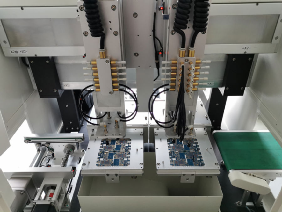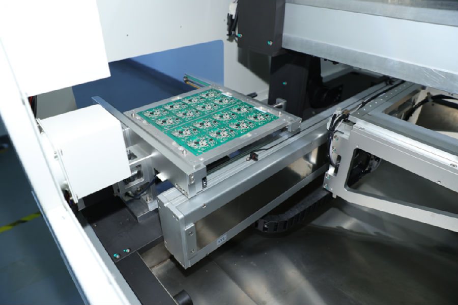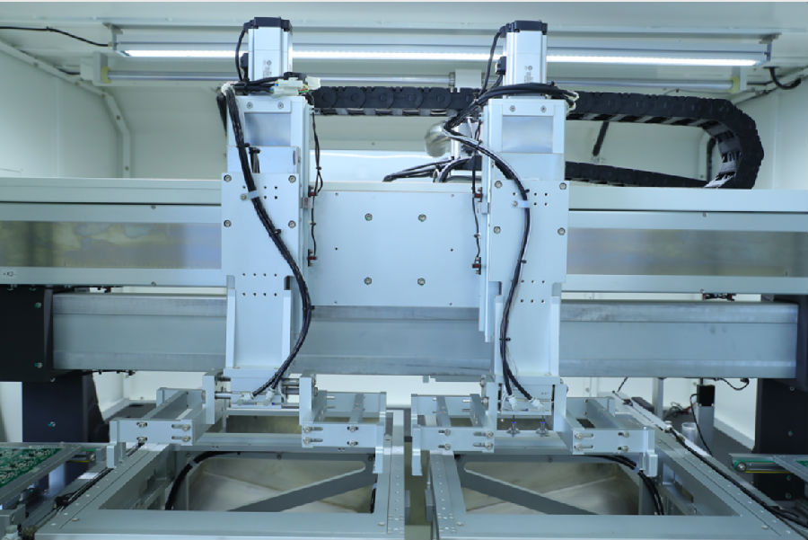 1.将产品分板治具夹取放置到加工平台分板,加工完成后再次把分板治具夹取放置轨道流入下部工序。