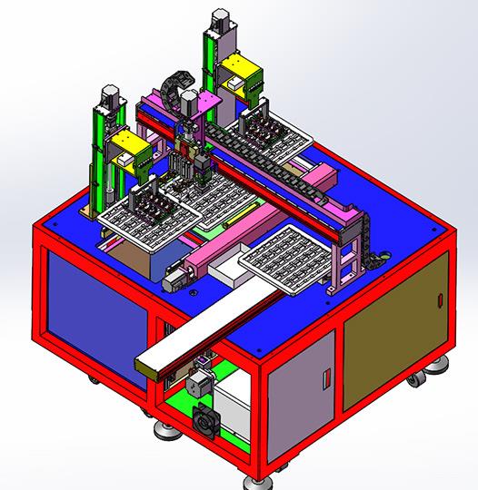 空盘仓储存放托盘马达带动自动上升到自动取空盘高度,等待Z2轴吸取放入摆盘处,等待装PCB板。