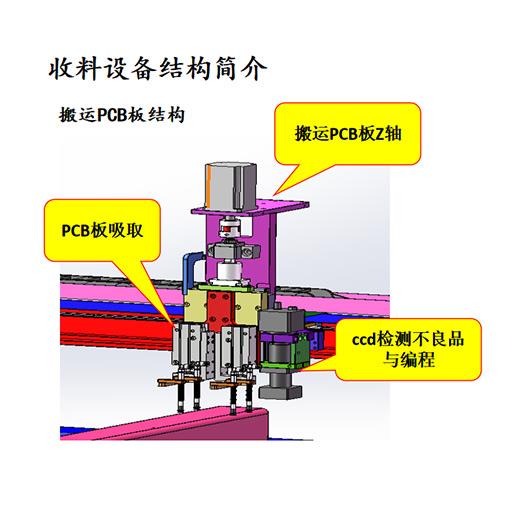 伺服马达从出料托盘内去吸取已经切好的PCB板,然后放入托盘内,根据PCB板类型,自动判别是否需要旋转PCB板。